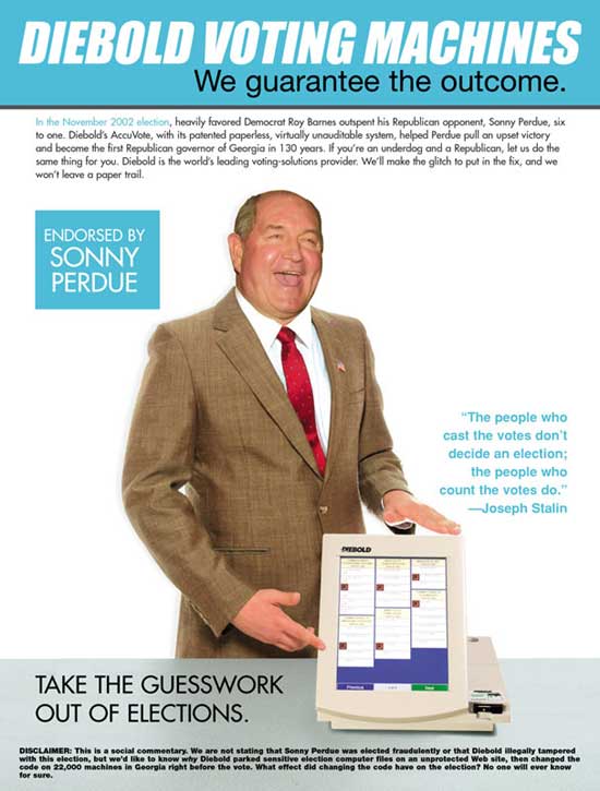 And there's the famous fund-raising letter from Diebold CEO Walden O'Dell. A member of the Bush's Rangers fund-raising team and a sometime guest at the president's ranch, O'Dell sent a letter to 100 wealthy Republicans last year inviting them to his Ohio home. In the letter he said he was "committed to helping Ohio deliver its electoral votes to the president" in 2004. He had the unfortunate timing of sending the letter while Diebold was in the process of bidding for Ohio's voting-machine contract. The company said O'Dell would be keeping a lower political profile in 2004. (Watch an animated parody of Diebold's Republican connections that appeared on the Web after O'Dell's fund-raising letter came out.)