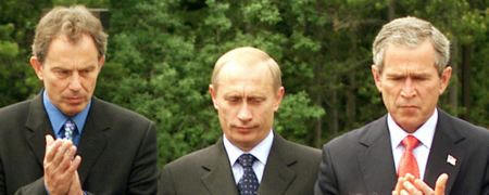 (RN 24/7: It's interesting that a comparison with the Yalta Conference [photo, below right] would be made, especially considering the disastrous consequences of that meeting: The slavery of central and eastern European nations, the forced repatriation of millions back to Soviet Union, where they faced imprisonment or worse, and the start of the Cold War. Given such a sad and bitter history, it takes considerable chutzpah to invoke the tragic name "Yalta" and attach it to current dealings with the Russians. That such a monument to evil diplomacy is mentioned in the context means that the meetings should be watched with the utmost interest. Tens of millions of people suffered for decades as a result of the first Yalta, will the second have a similar effect?  Ironically, memory of the Yalta Conference is also being revived at a time when those same countries are about to enter the European Union, a move that one observer says "finally buries a world order drawn up at Yalta in 1944 when Soviet leader Joseph Stalin, U.S. President Franklin D. Roosevelt and British Prime Minister Winston Churchill agreed to spheres of influence that led to the division of Europe." But is that world order really dead or merely reconfigured in a less overtly threatening--but every bit as dangerous--way? Considering that "ex-Communist" leaders like Russia's Vladimir Putin and Uzbekistan's Islam Karamov are still in power, it is not unwise to view the alleged changes with a very healthy dose of skepticism.)